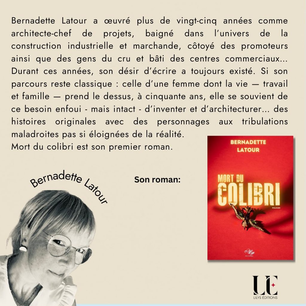 Bernadette Latour, autrice du roman « Mort du Colibri », qui a fait son entrée dans le monde littéraire le 1er décembre 2023. Cette nouvelle voix audacieuse et prometteuse se prépare à sa première Foire du livre en avril prochain.