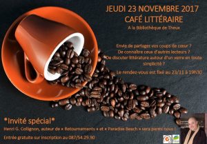 Ensuite… Notre Henri Collignon national sera, le 23 novembre, à la Bibliothèque de Theux, accompagné d’un membre de chez LiLys.